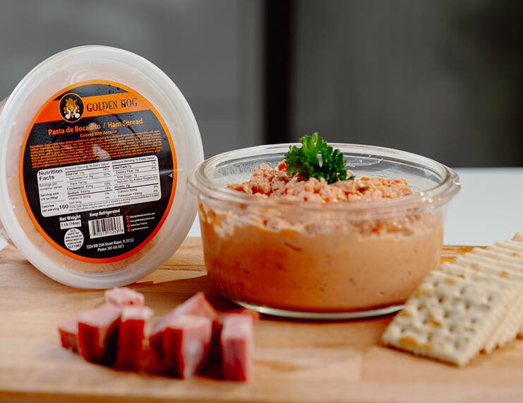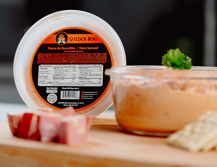 Taste the authentic flavor of Cuba with Golden Hog Pasta de Bocadito, the classic Cuban ham spread that has been a staple at family gatherings, parties, and celebrations for generations. Made from premium cooked ham, mayonnaise, and a special blend of seasonings, this creamy, smoky, and savory spread is perfect for Cuban sandwiches, crackers, and bocaditos (mini sandwiches).